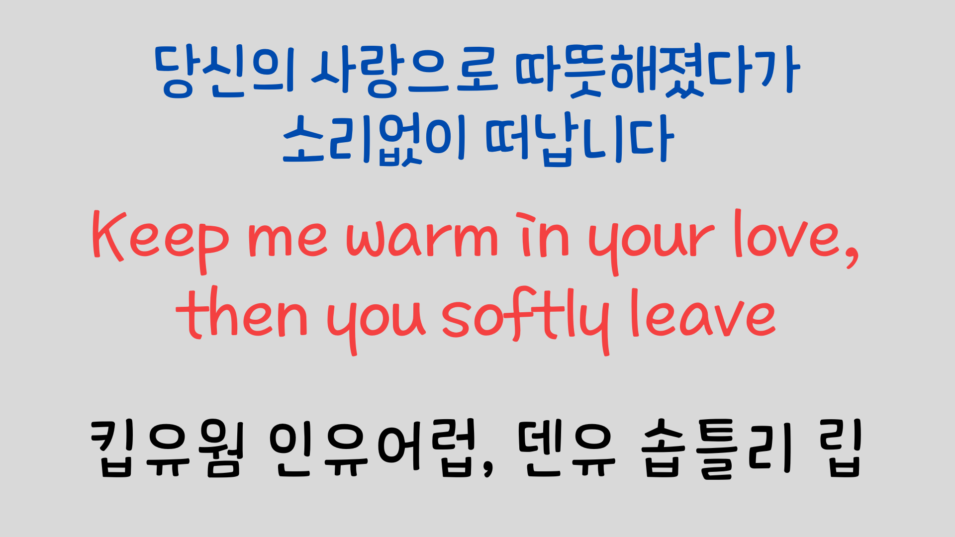 한 소절씩 나눠서 가사의 의미와 주요 발음 현상을 설명해 보았습니다. 글자와 다르게 소리가 나는 원리를 이해하면 훨씬 잘 들리고 따라 부르기도 좀 더 수월해질 거라 생각합니다.